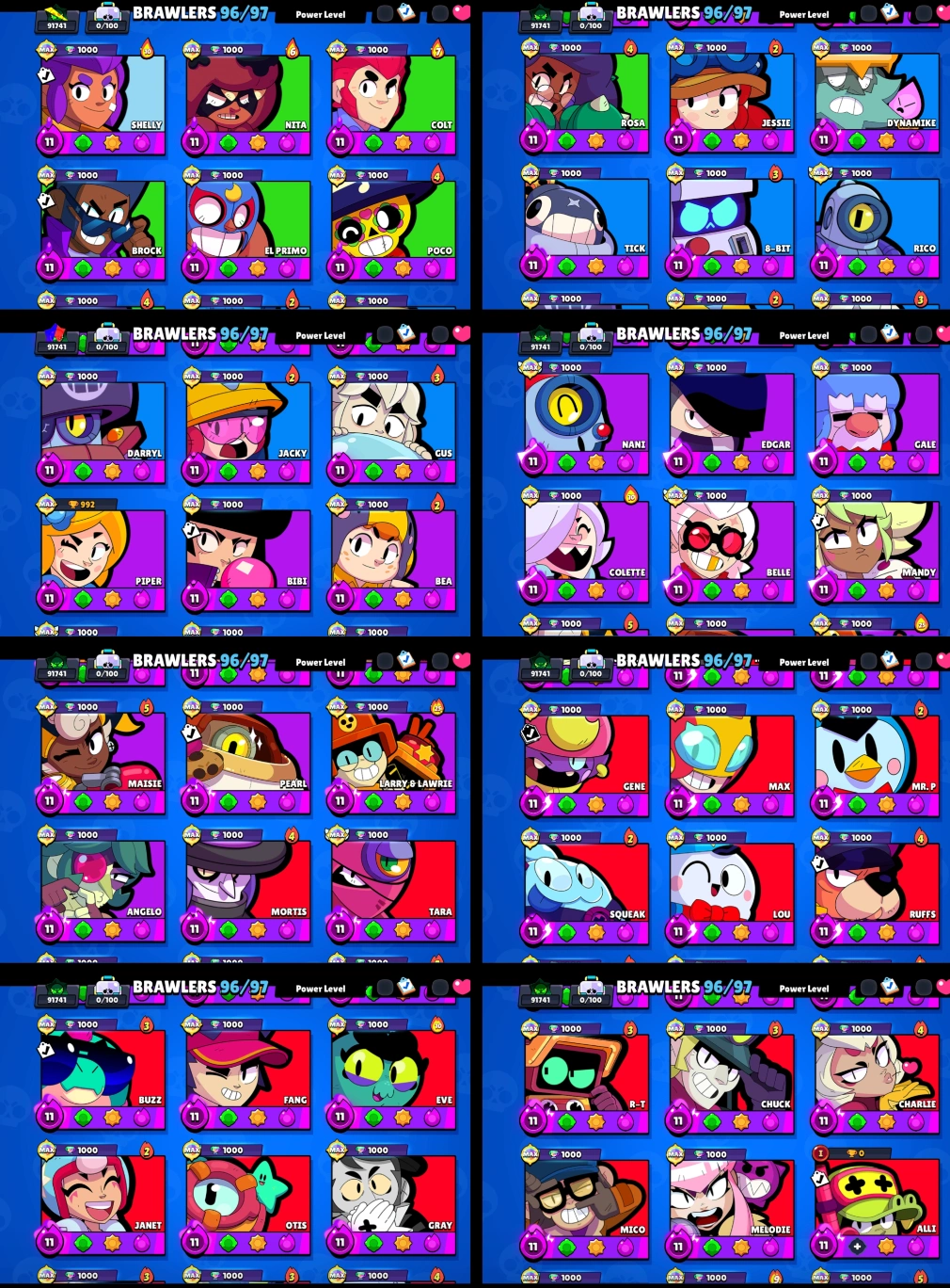 - Max Level Brawlers: 96