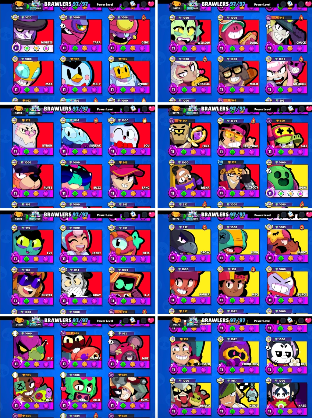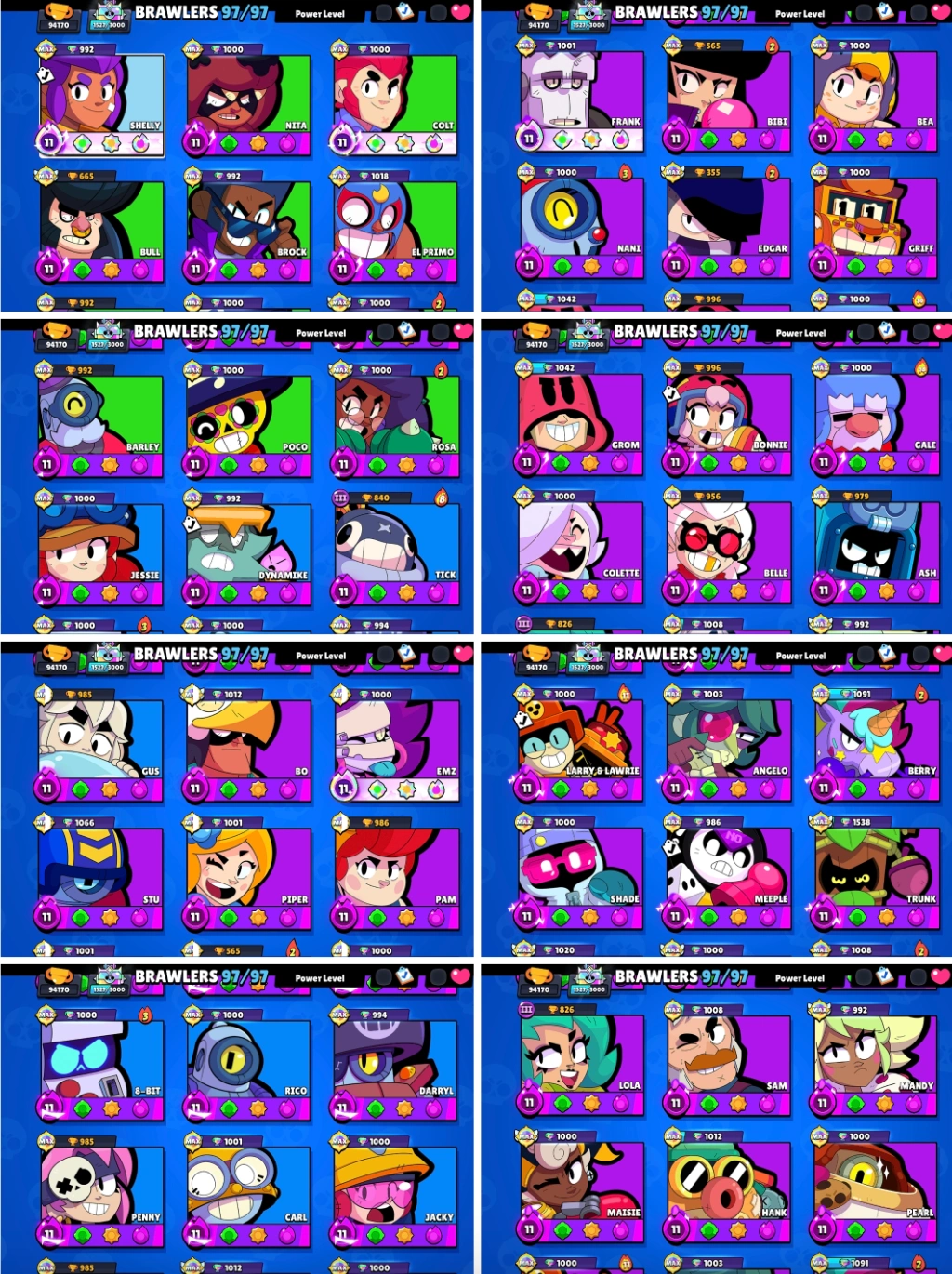 • Max Level Brawlers: 97